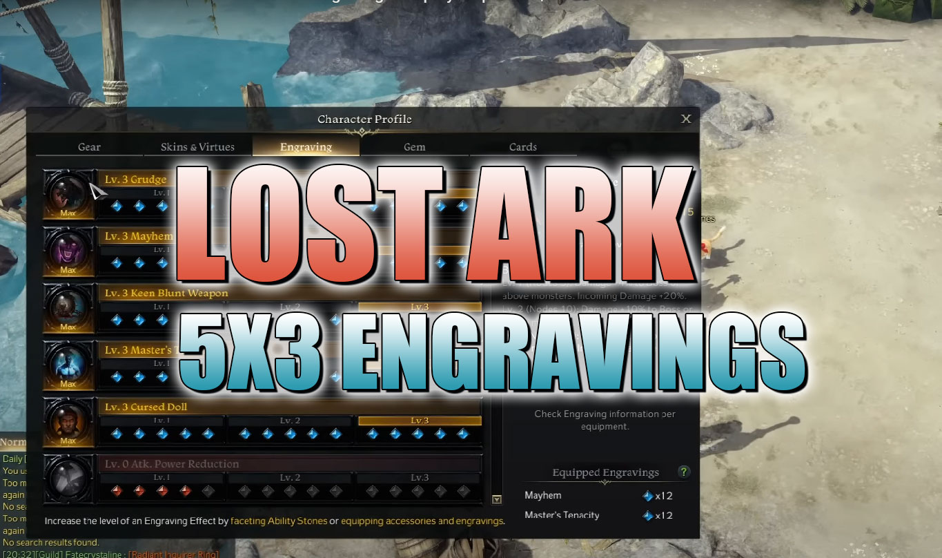 6/20/2022 3:38:11 PMIn this Lost Ark guide, we share you with the 5x3 Engraving Calculator and the cheapest method to get your level 3/3/3/3/3 engravings setup!How To Get 5x3 Engravings Set Up in Lost Ark?The method works for 4x3 engravings but works the best for 5x3 engravings because that will be the ultimate endgame... -