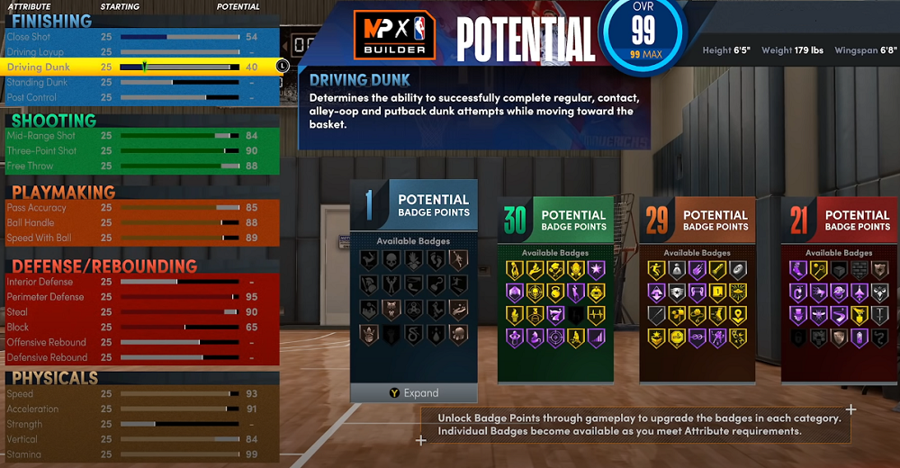 We are starting off the Point guard at the 5'9" and at the two we have a 6'5" that can work as a lockdown in the hash spot. We think a lot of Pro-AM teams typically do is they have the point guard at a 6'3" or something like that that can play the hash and is a secondary ball-handler, but isn't exactly a lockdown for them. But we really don't understand that concept. When you can just make a build could play the hash and the lockdown, and then the versatility that you have because of making that on ball lockdown is the 6'5" that can still play the hash, you have all the versatility and comfortability in the world to have your two corner spot ups be too power forwards to an extent. And a lot of the comp pro and people hate on lineups like this because it's quote unquote invalid, but to us, this is by far the best lineup. So here we list the best Pro Am Builds for each position here for your reference!